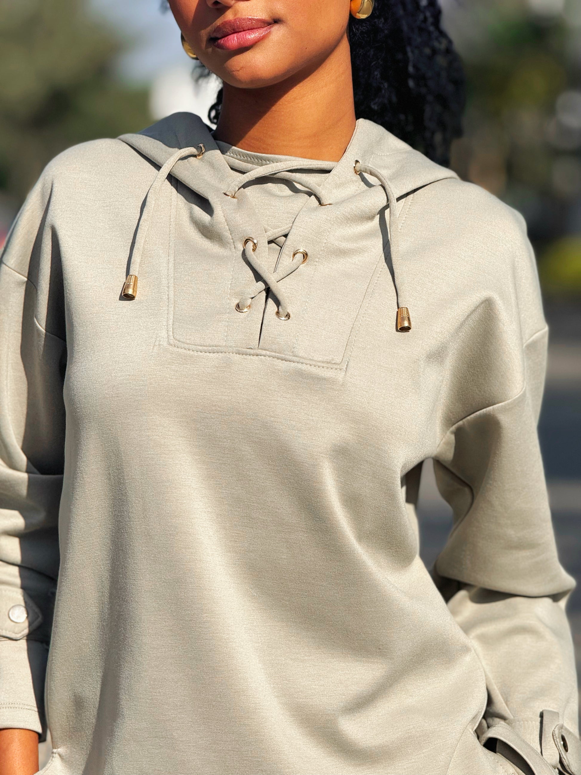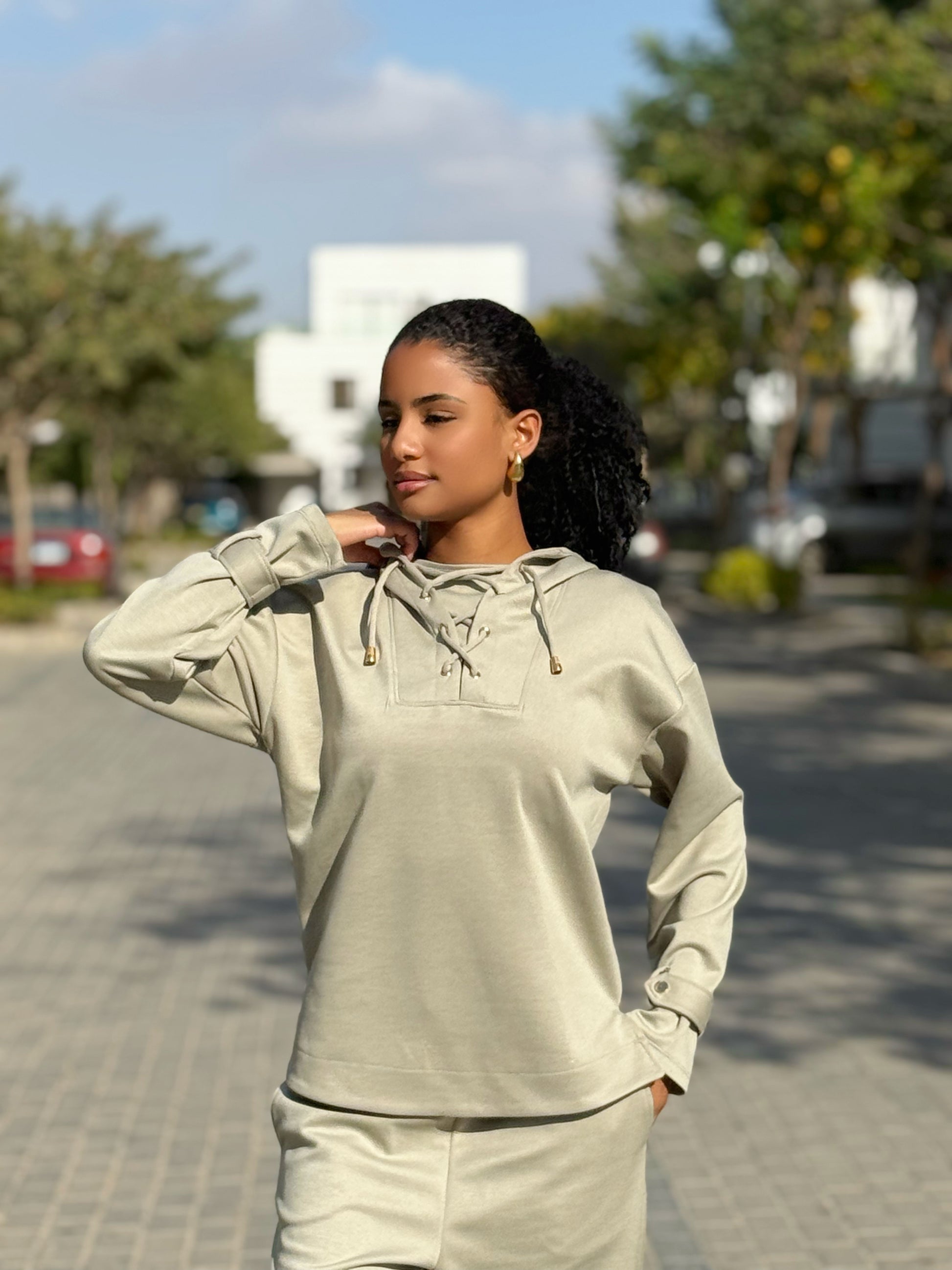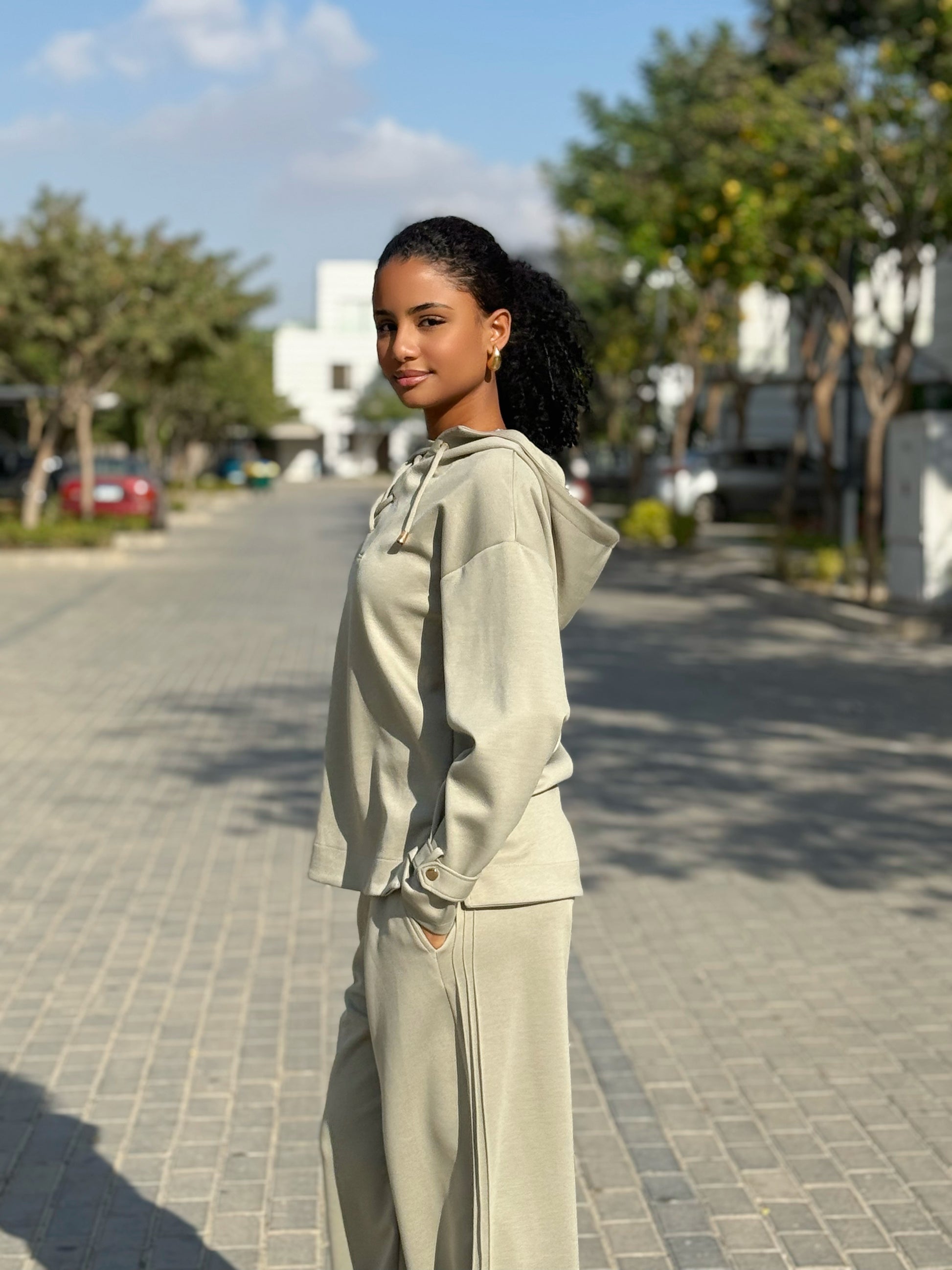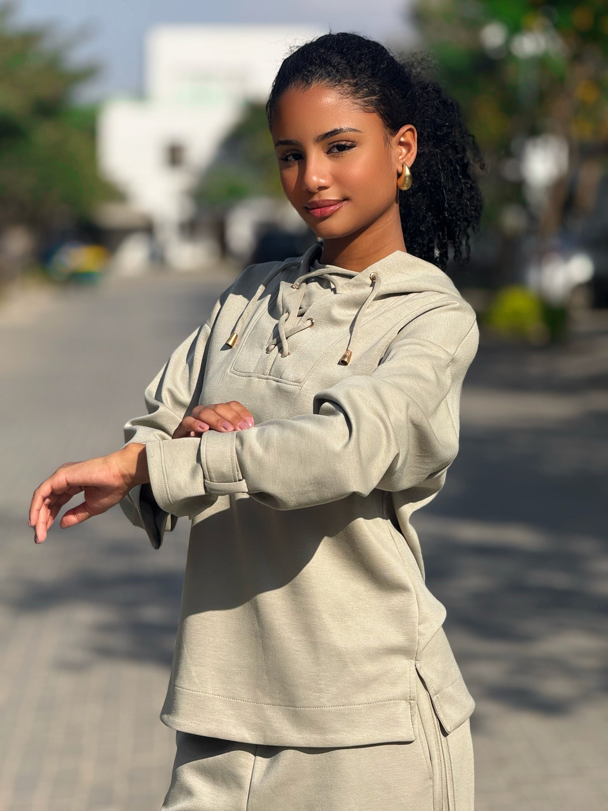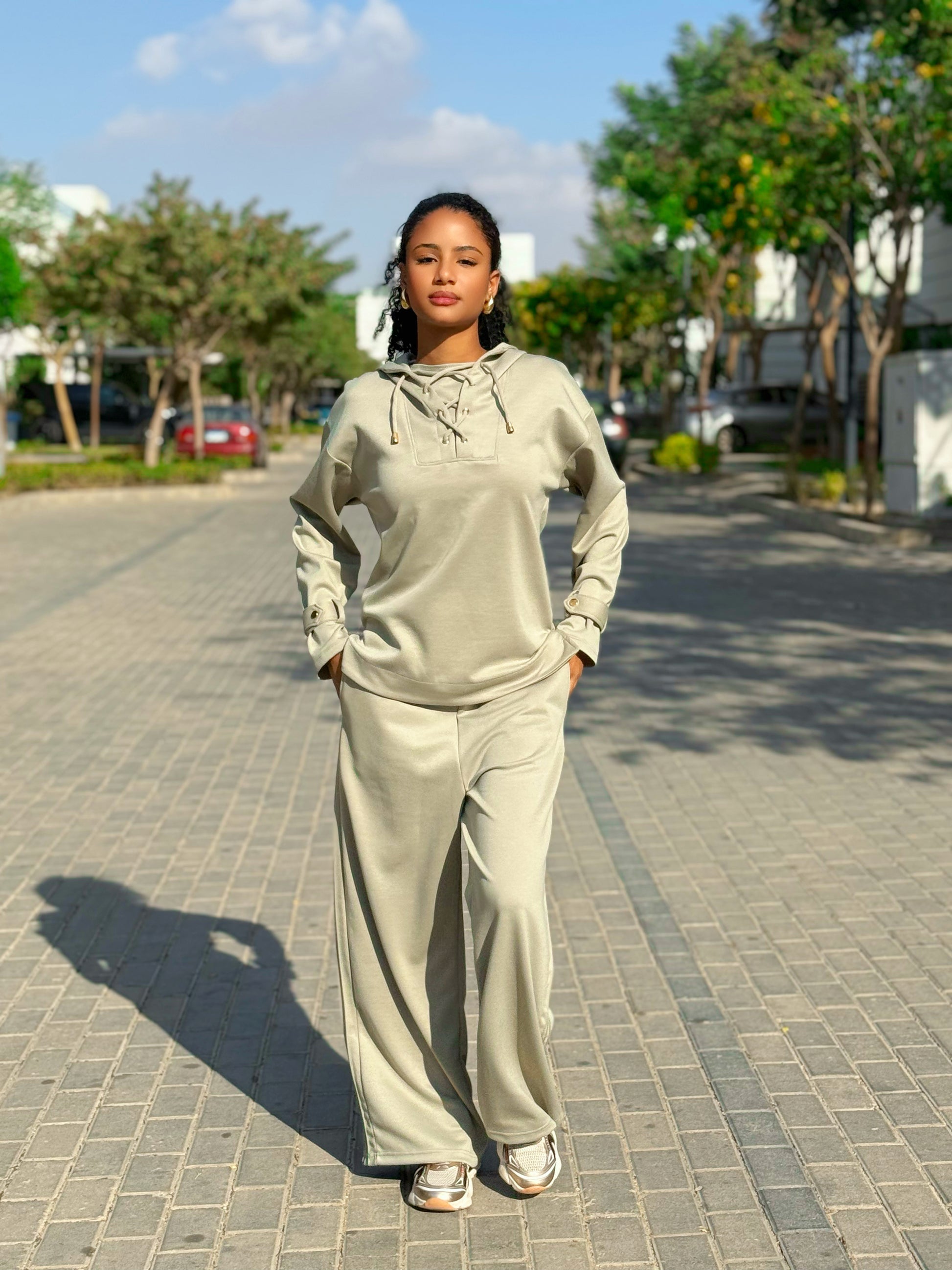 A relaxed two-piece set crafted from our ultra-soft fabric. The top features a minimal lace-up neckline and a comfy, easy fit, paired with wide-leg pants for effortless movement. Light, breathable, and everyday-approved — this set blends comfort with a clean modern look.